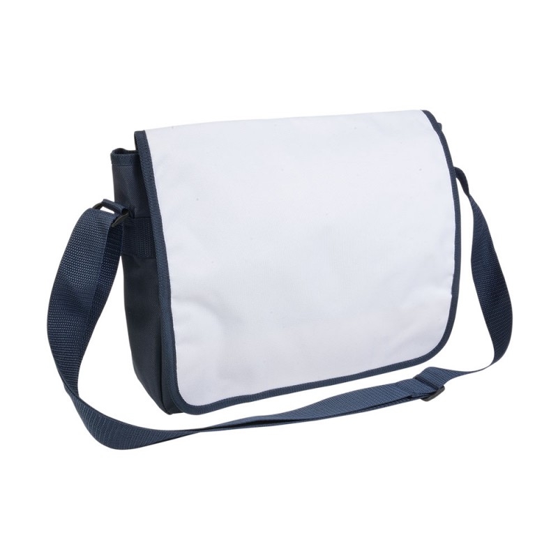 Cartella in poliestere 600D con tracolla regolabile e patta bianca
