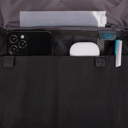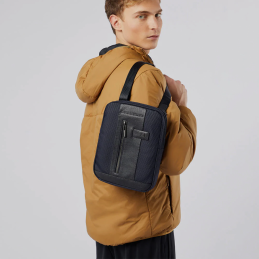 Zaino monospalla porta iPad®mini in tessuto gommato resistente all’acqua con protezione RFID e tasca per Piquadro Smart Tracker